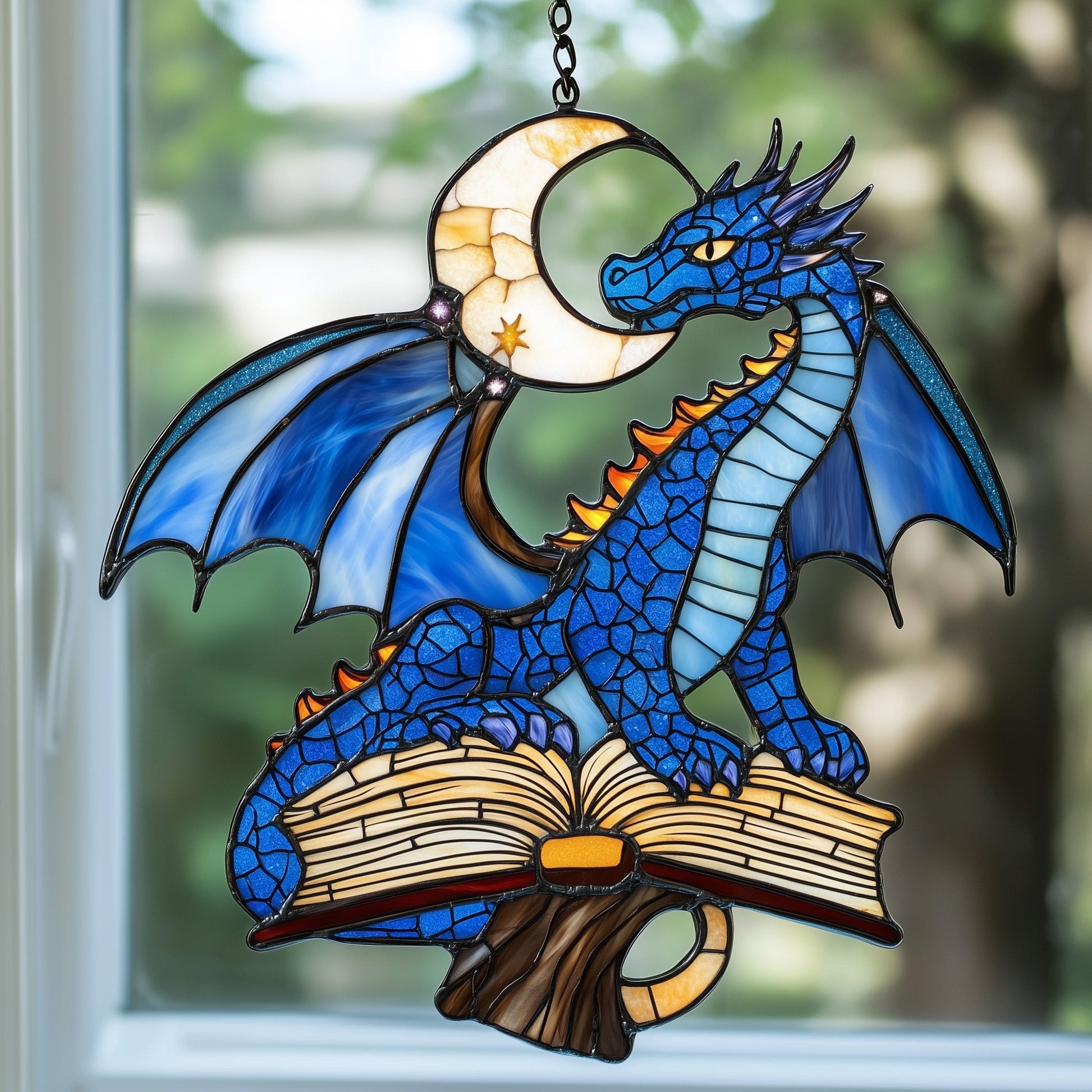 Bookish Dragon Stained Glass Suncatcher GFTOAB3963
