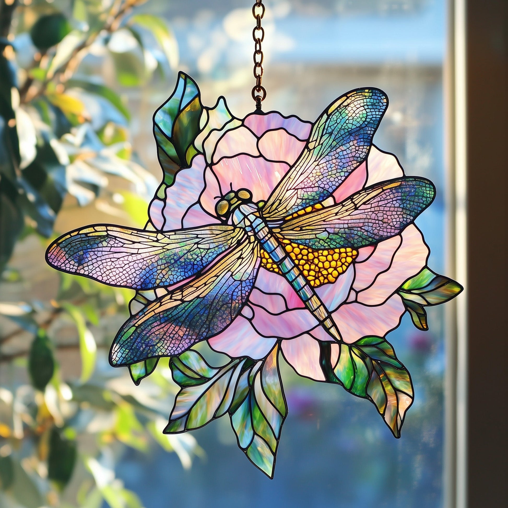 Dragonfly in Peony Garden Window Hanging Suncatcher GFTOAB4292
