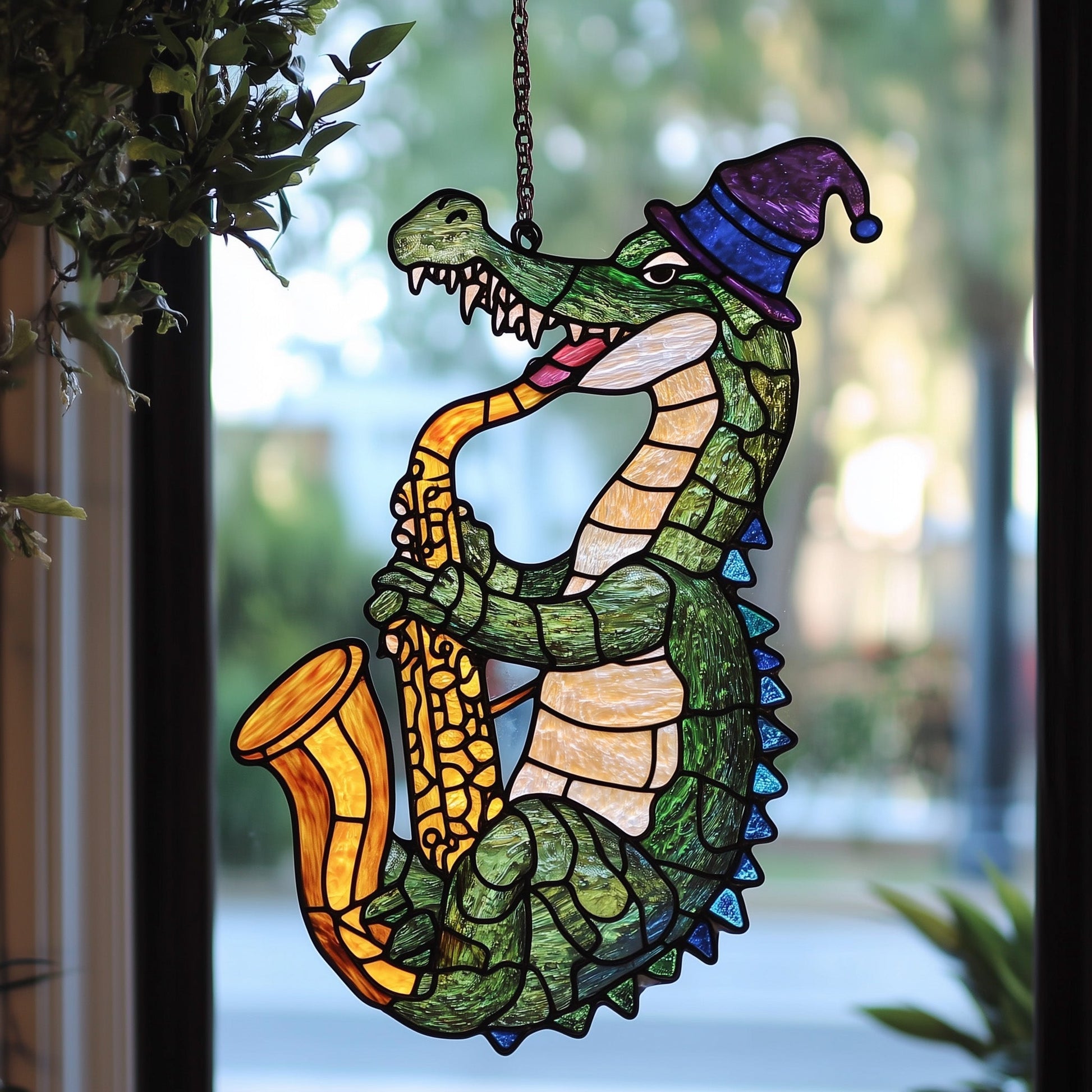 Mardi Gras Alligator Stained Glass Suncatcher GFTOAB4081