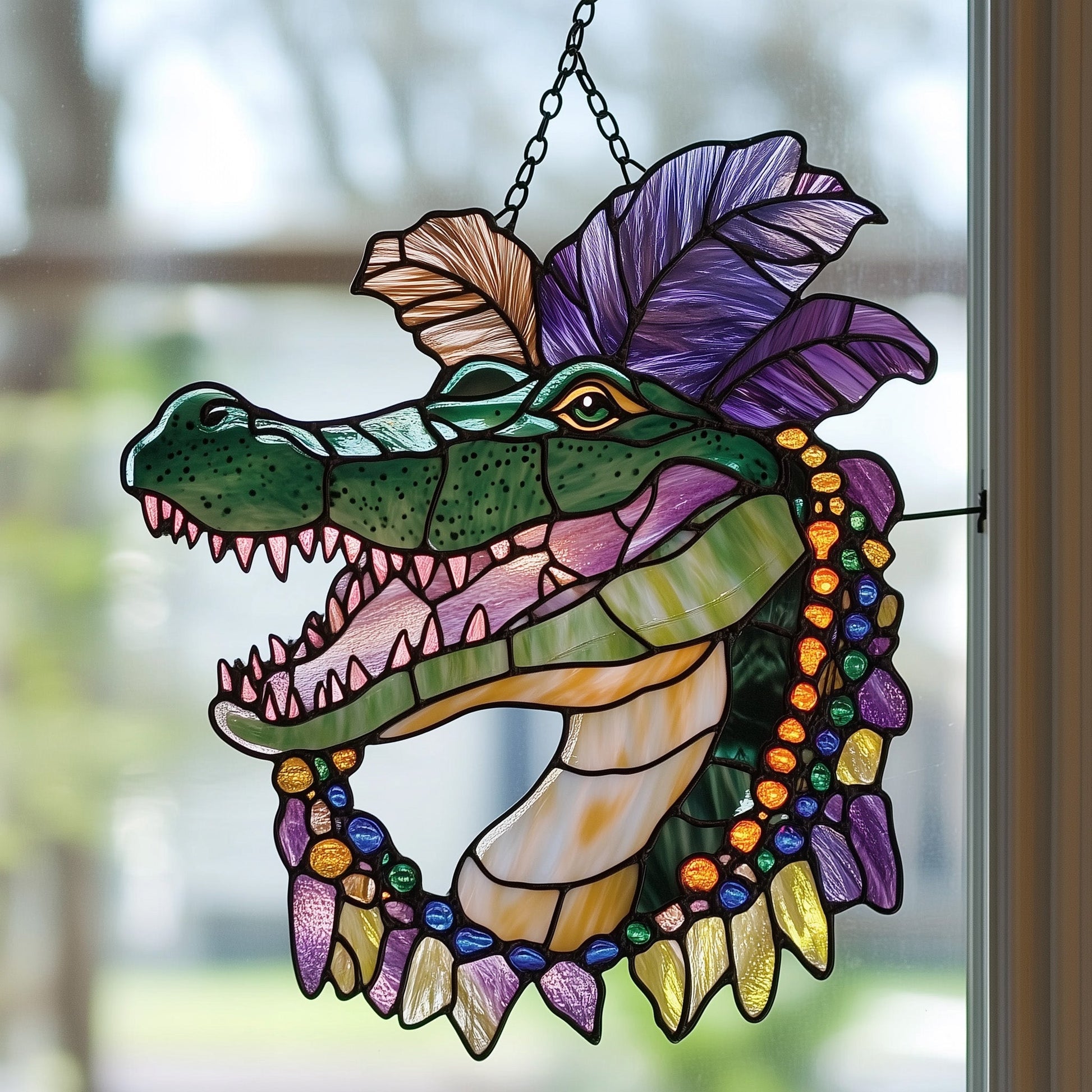 Mardi Gras Alligator Stained Glass Suncatcher GFTOAB4083