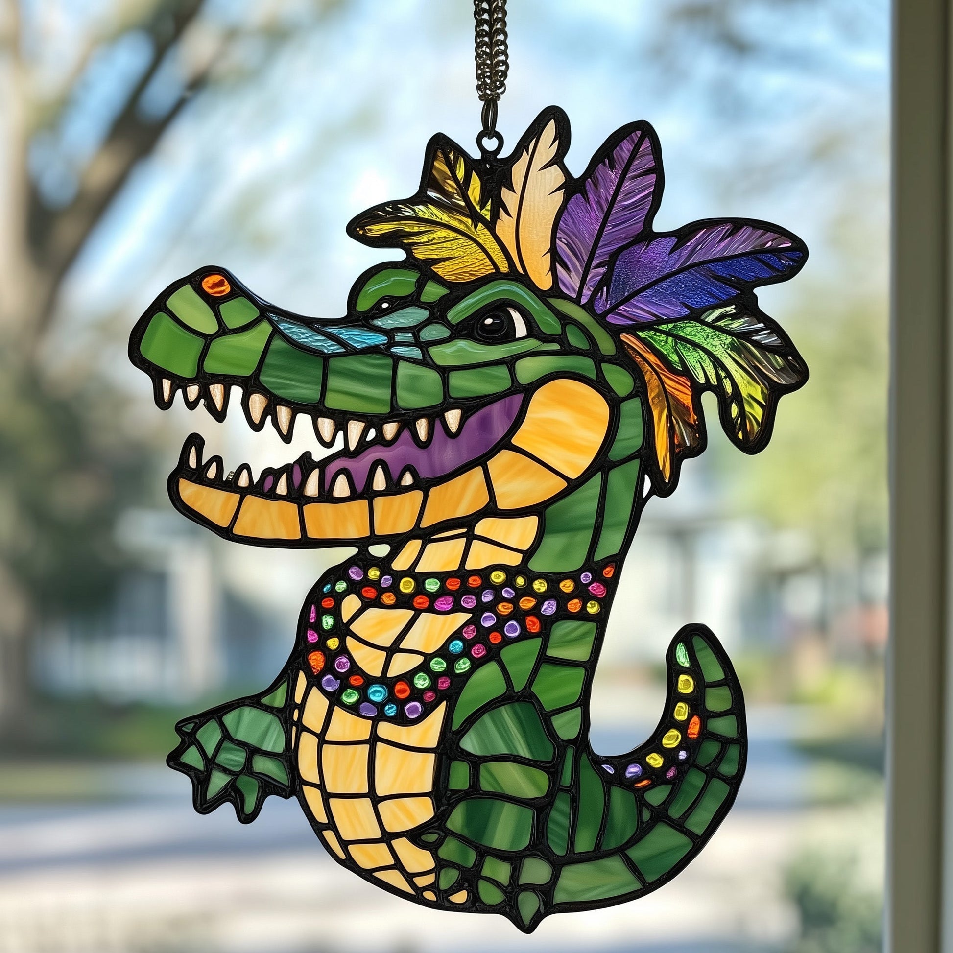 Mardi Gras Alligator Stained Glass Suncatcher GFTOAB4085