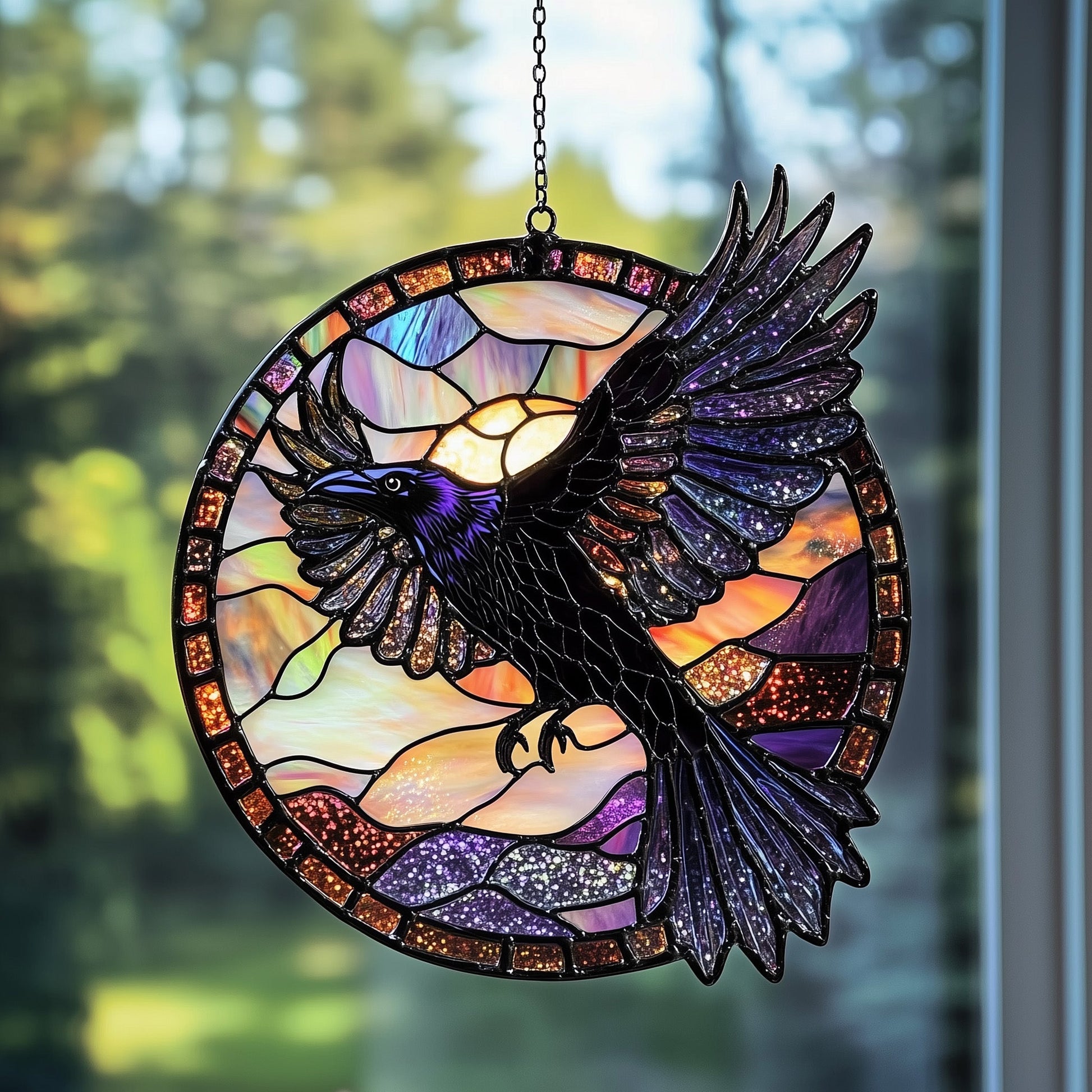 Mystic Raven Stained Glass Suncatcher GFTOTP5066