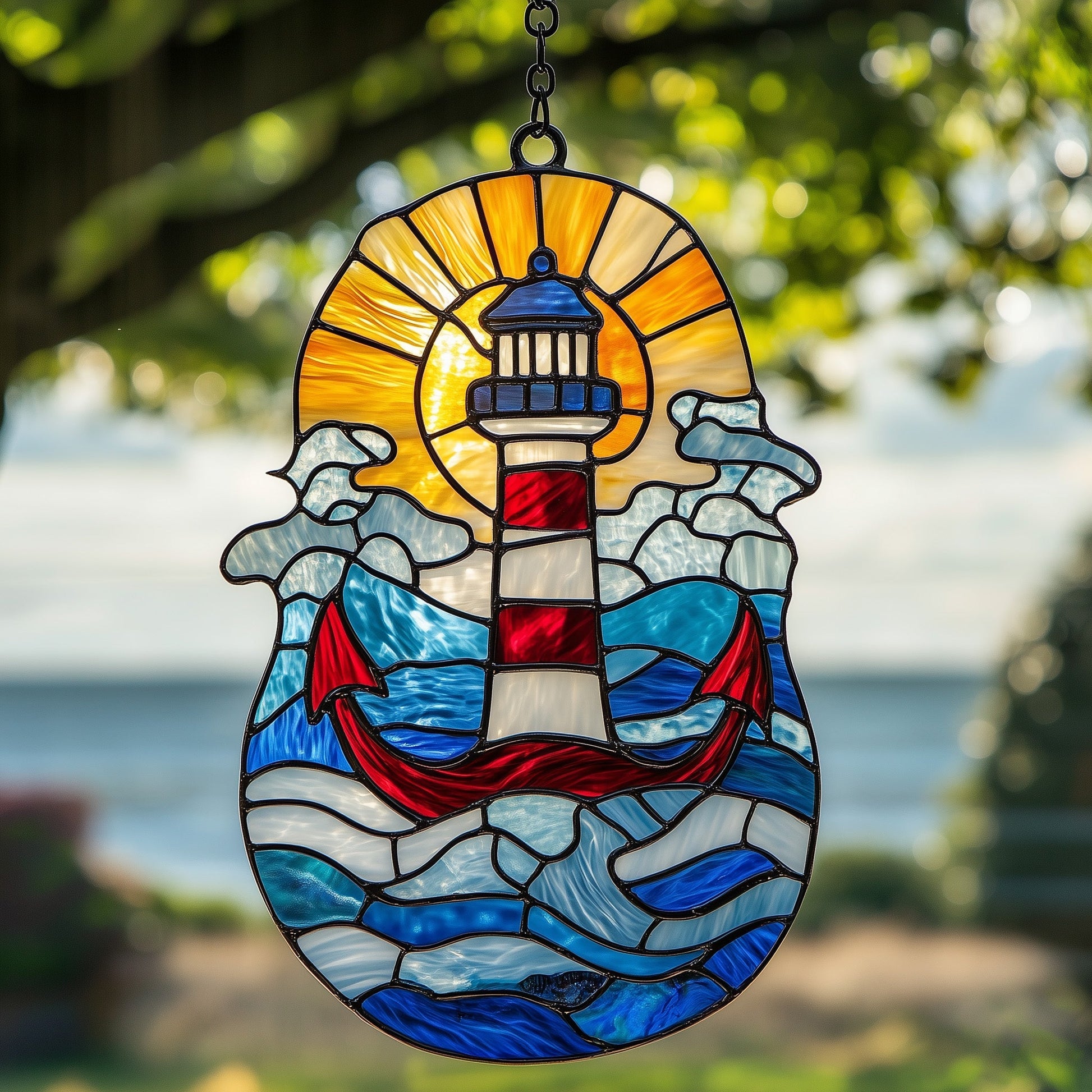 Nautical Lighthouse Stained Glass Suncatcher GFTOAB4074