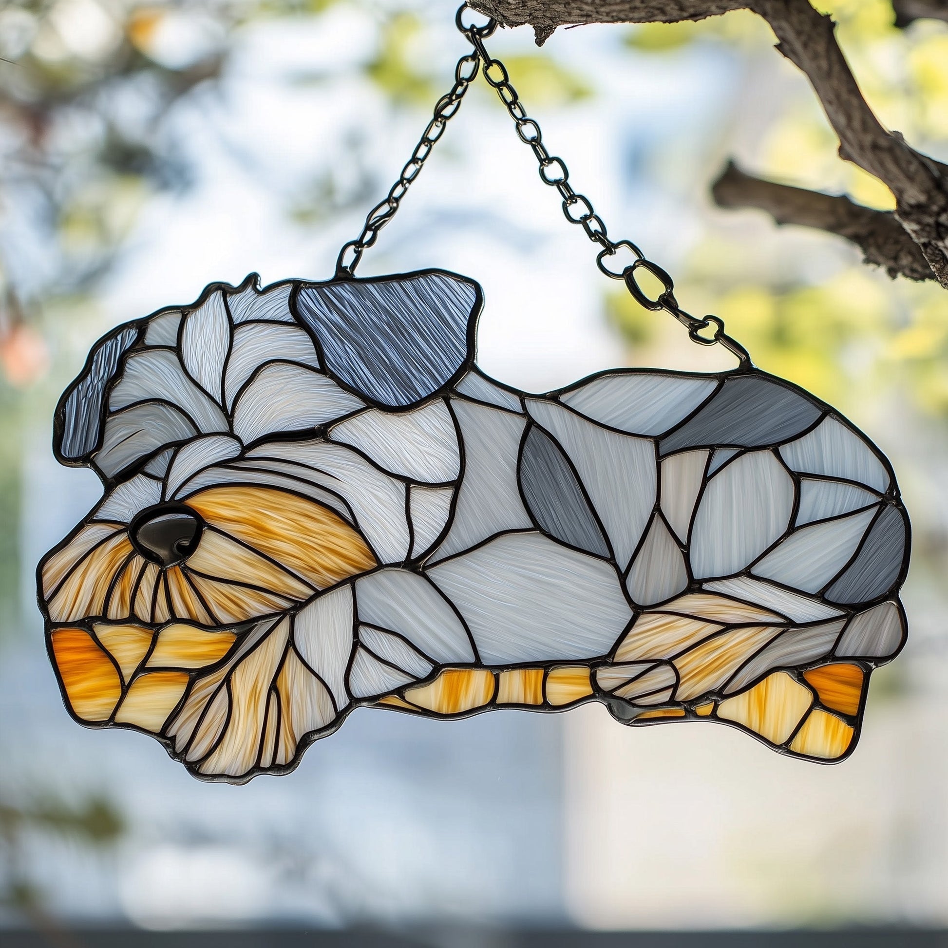 Sleepy Schnauzer Stained Glass Suncatcher GFTOAB3867